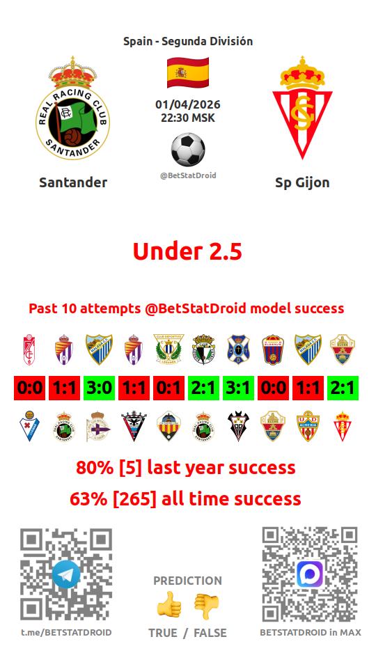 ✔ Sp Gijon scores under 2,5 goals in each of 9 last games