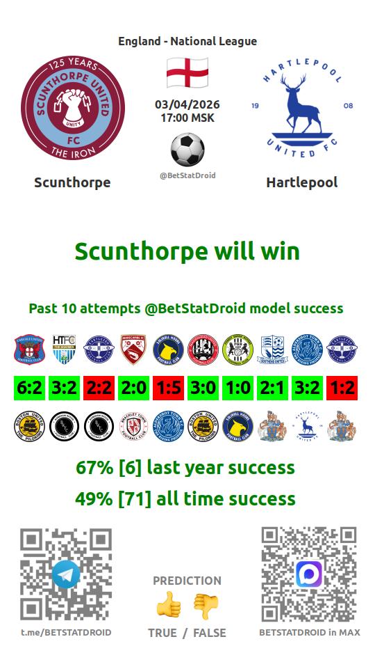 ✔ Scunthorpe scores over 1,5 goals in each of 5 last games