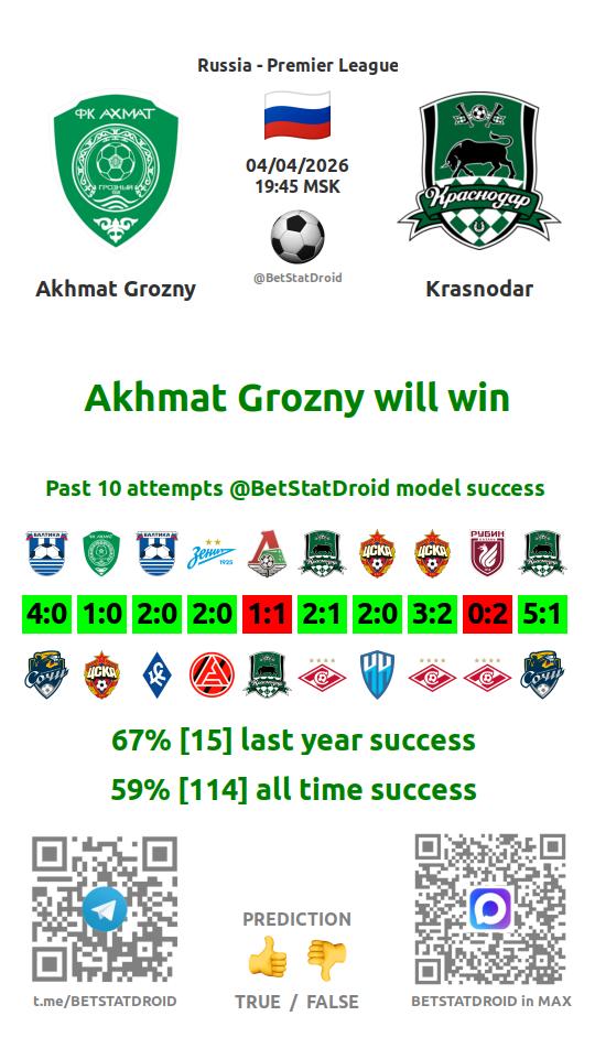 ✔ Akhmat Grozny have not drawn their last 7 games
