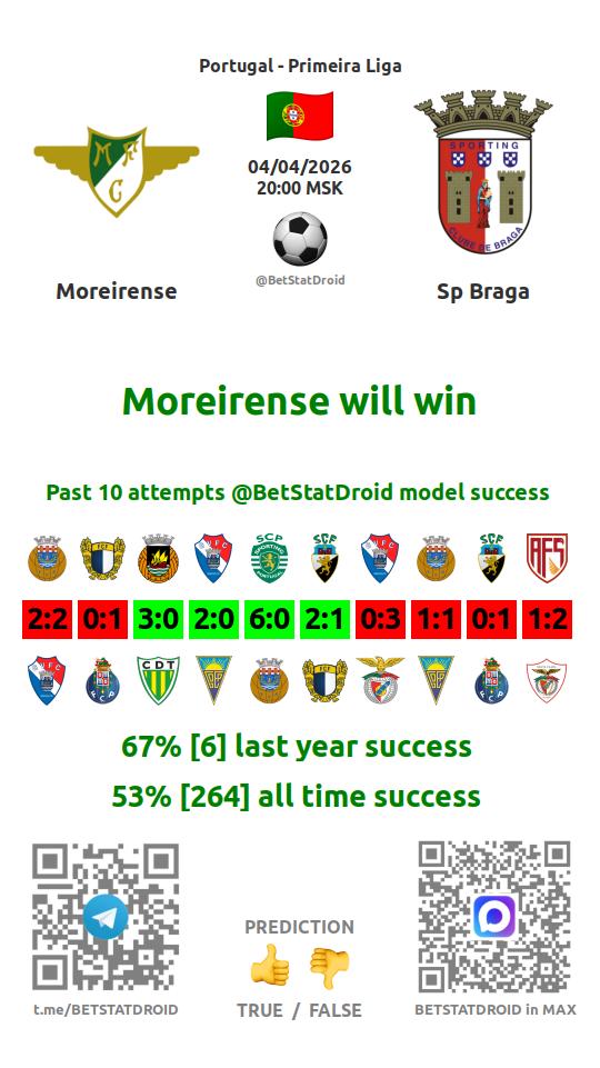 ✔ Moreirense scores under 2,5 goals in each of 10 last games