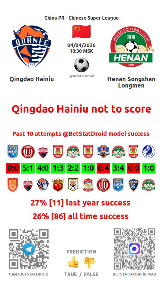 ✔ Qingdao Hainiu scores in each of 5 last games