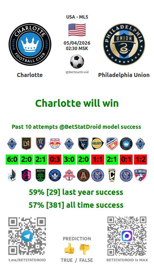 ✔ Charlotte lost under 1,5 goals in each of 5 last games