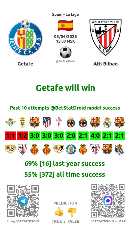 ✔ Getafe lost under 1,5 goals in each of 5 last games