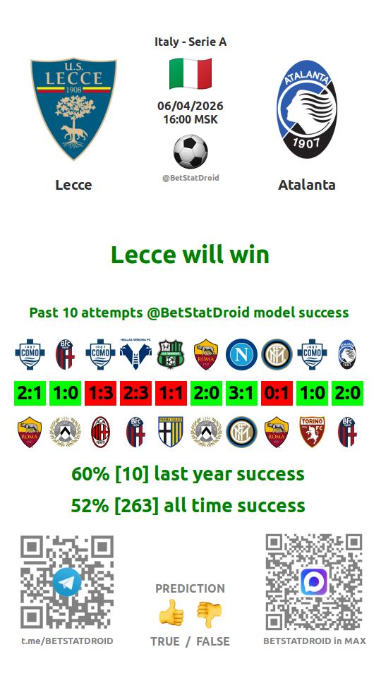 ✔ Lecce scores under 2,5 goals in each of 41 last games
