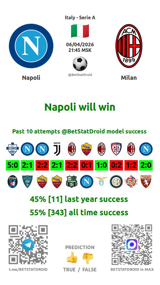 ✔ Napoli lost under 2,5 goals in each of 8 last games