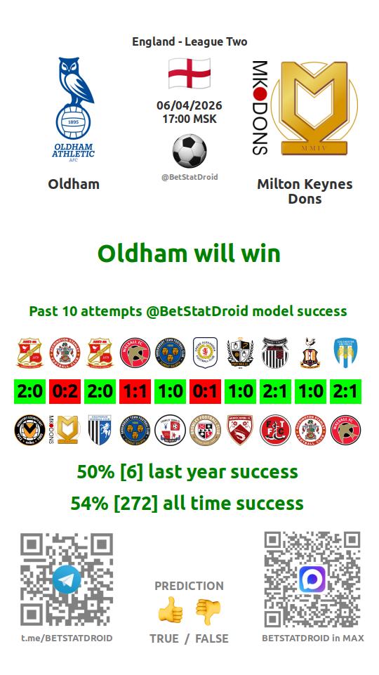 ✔ Oldham not lost goals in each of 5 last games