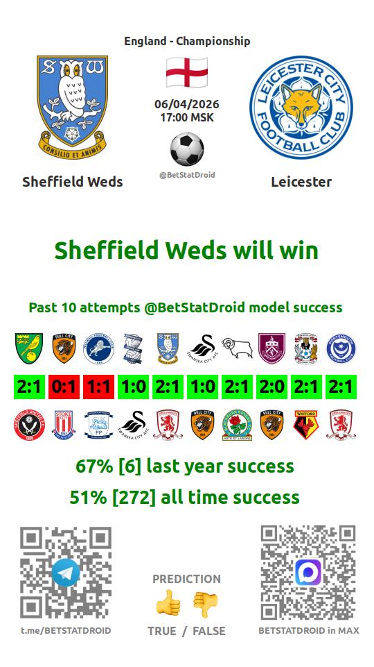 ✔ Sheffield Weds scores under 1,5 goals in each of 8 last games