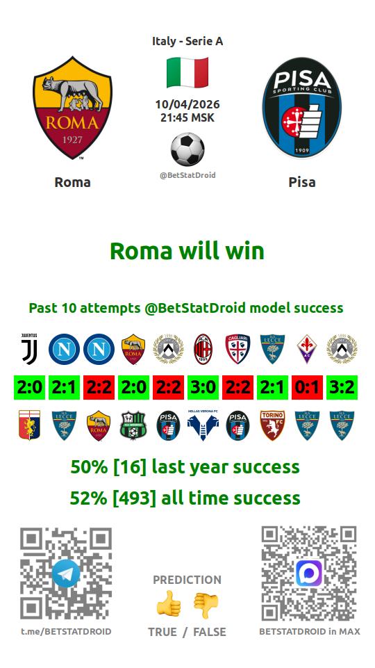 ✔ Pisa scores under 2,5 goals in each of 15 last games