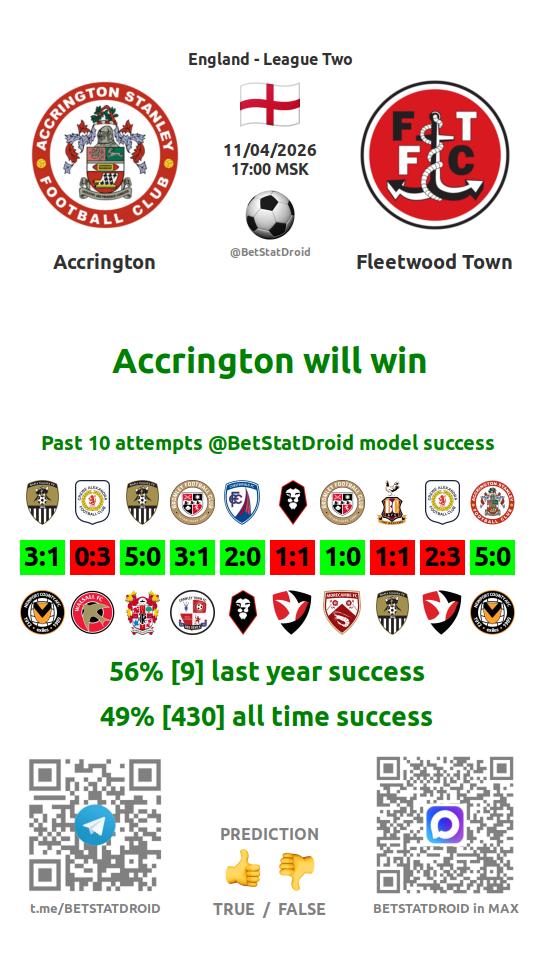 ✔ Accrington scores under 2,5 goals in each of 13 last games