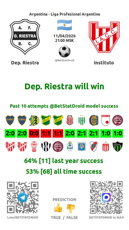 ✔ Dep. Riestra scores under 1,5 goals in each of 18 last games