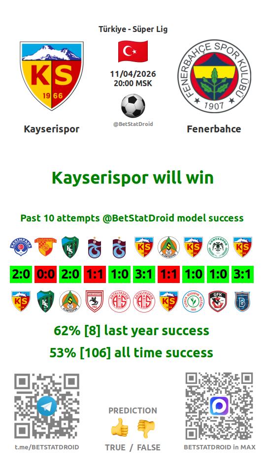 ✔ Kayserispor scores under 1,5 goals in each of 7 last games