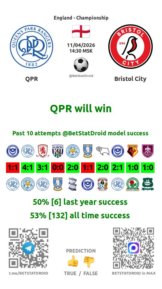 ✔ QPR scores under 1,5 goals in each of 10 last games
