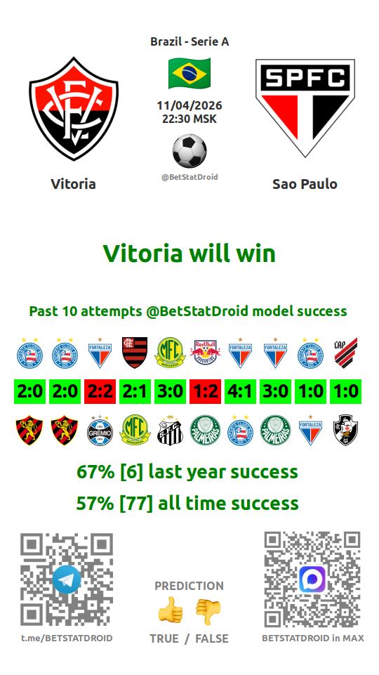 ✔ Vitoria scores under 1,5 goals in each of 8 last games