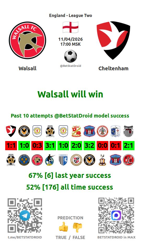 ✔ Walsall scores in each of 4 last games
