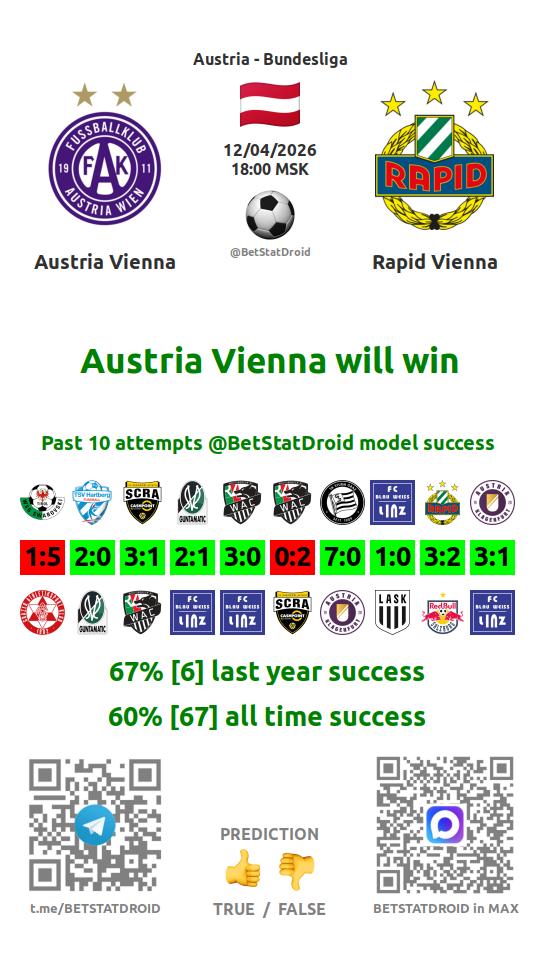 ✔ Austria Vienna scores under 2,5 goals in each of 8 last games