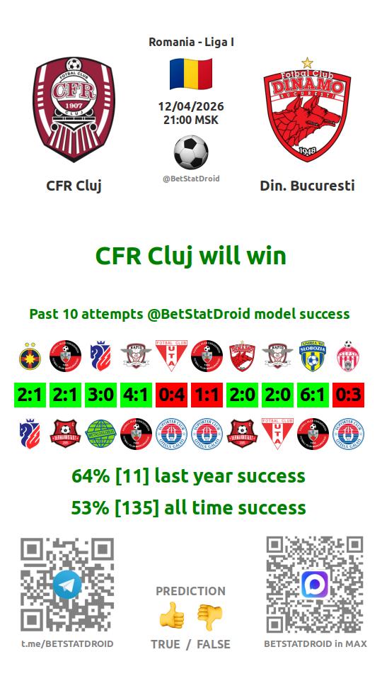 ✔ CFR Cluj lost under 2,5 goals in each of 12 last games