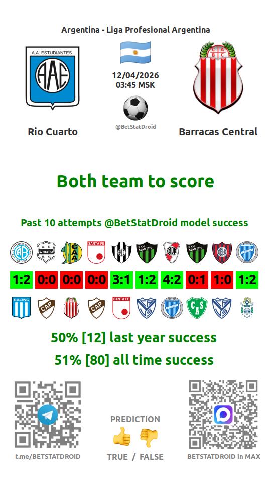 ✔ Rio Cuarto scores under 1,5 goals in each of 6 last games