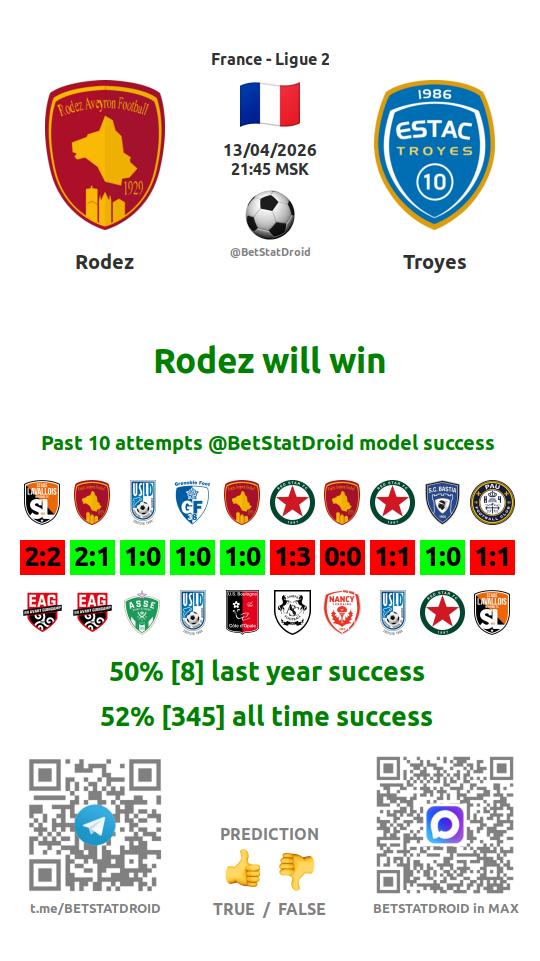 ✔ Rodez lost under 1,5 goals in each of 11 last games