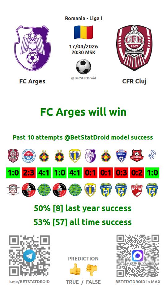 ✔ FC Arges lost under 2,5 goals in each of 10 last games