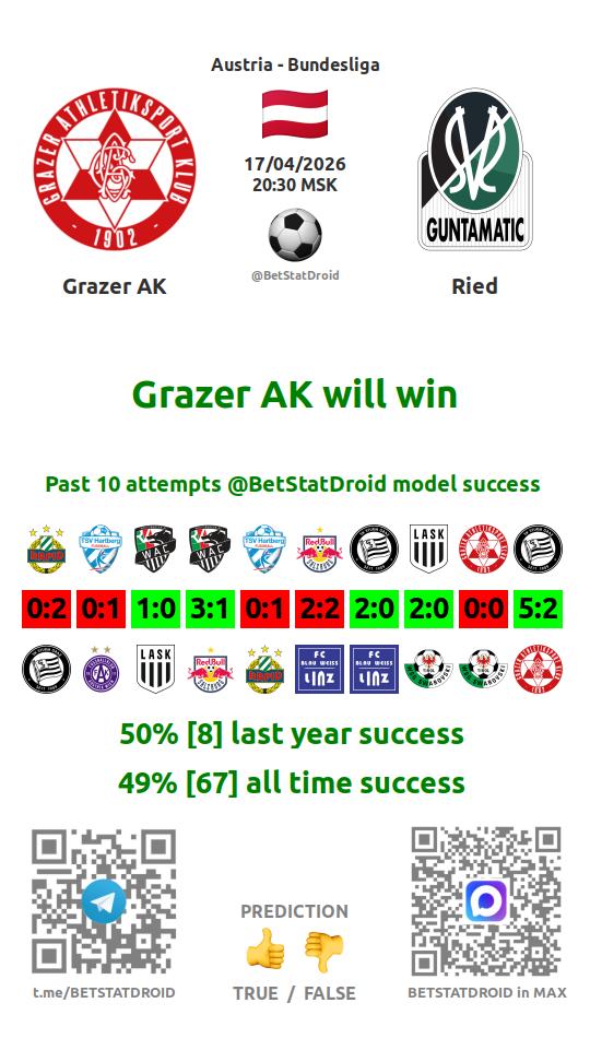 ✔ Grazer AK lost under 2,5 goals in each of 17 last games