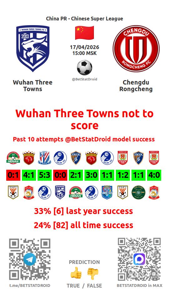 ✔ Wuhan Three Towns lost goals in each of 8 last games