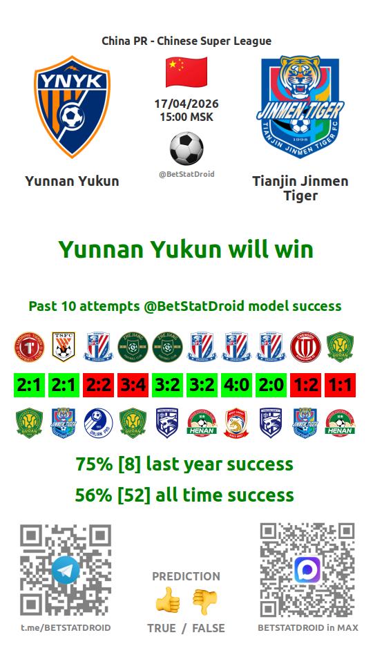 ✔ Yunnan Yukun lost under 1,5 goals in each of 6 last games