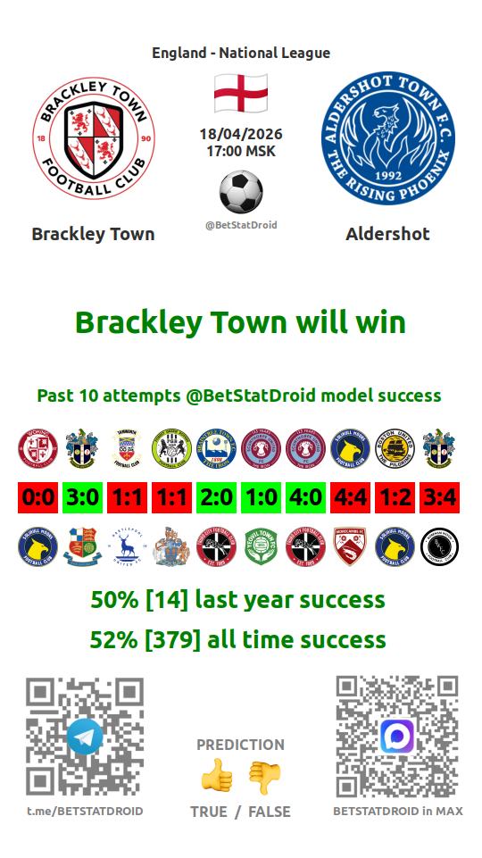 ✔ Brackley Town scores under 1,5 goals in each of 9 last games