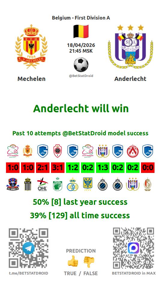✔ Mechelen scores under 2,5 goals in each of 13 last games