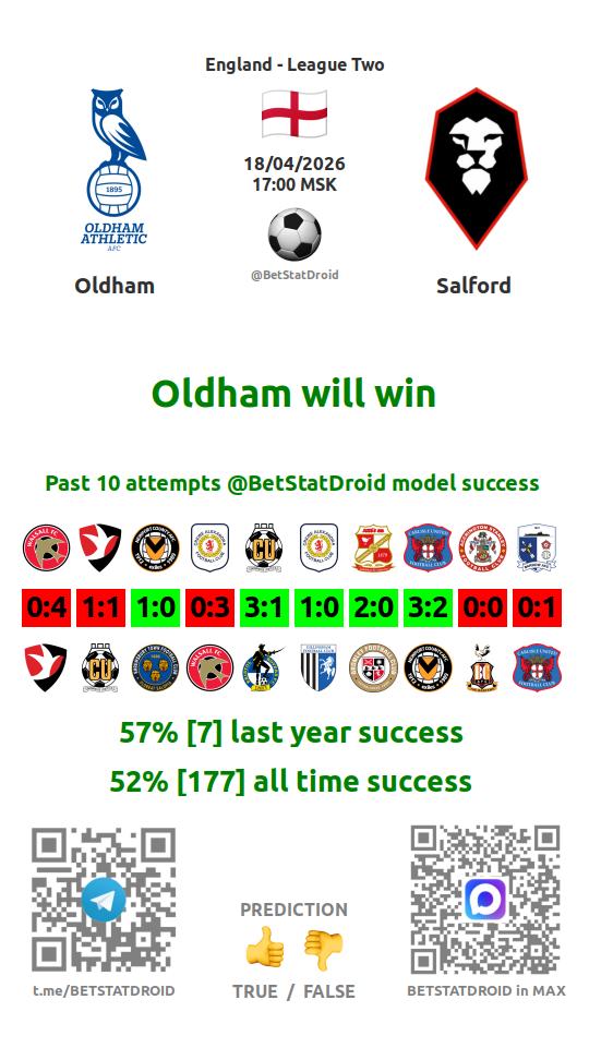 ✔ Salford scores under 1,5 goals in each of 5 last games