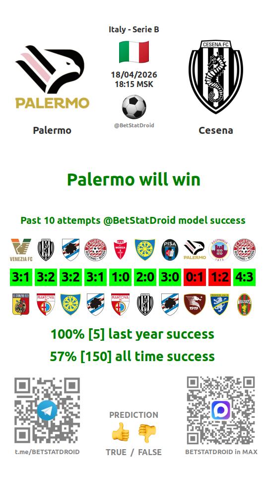 ✔ Palermo scores over 1,5 goals in each of 6 last games