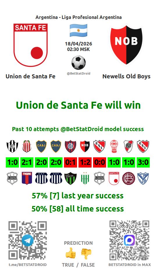 ✔ Union de Santa Fe lost under 2,5 goals in each of 25 last games