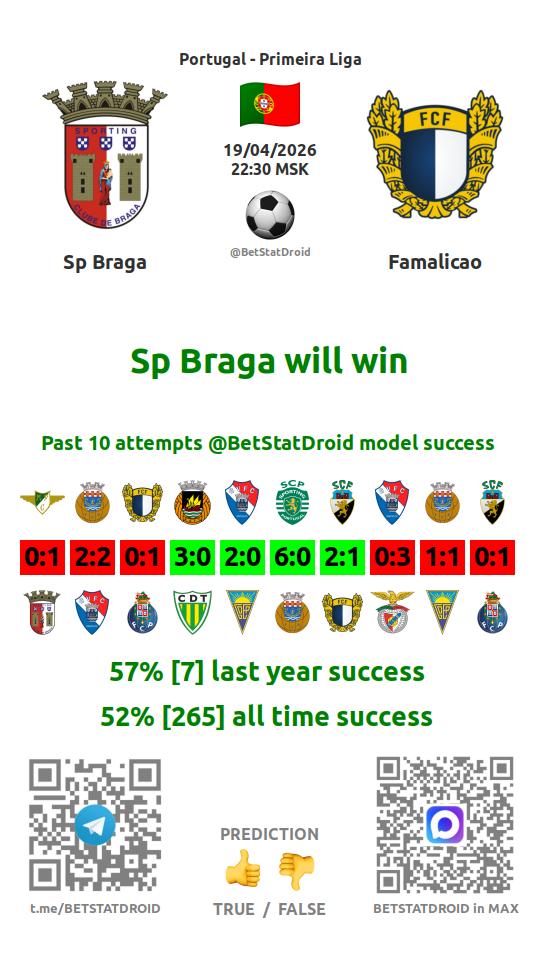✔ Famalicao scores under 2,5 goals in each of 8 last games