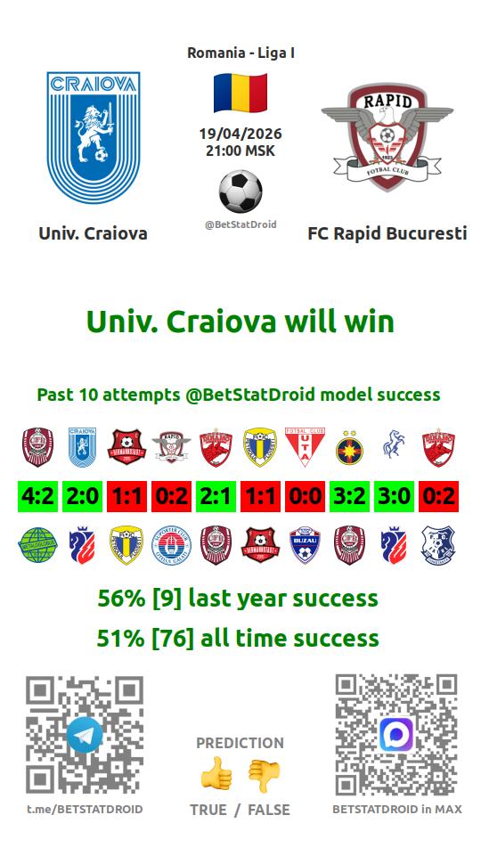 ✔ Univ. Craiova scores in each of 4 last games