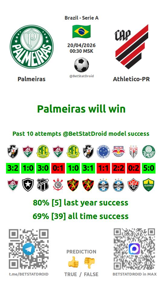 ✔ Palmeiras lost under 2,5 goals in each of 26 last games
