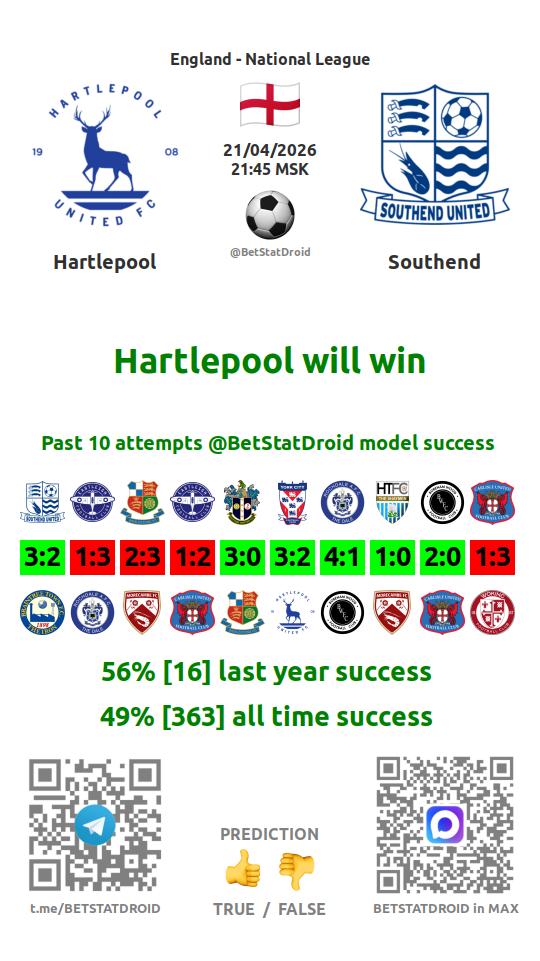 ✔ Southend lost under 2,5 goals in each of 18 last games