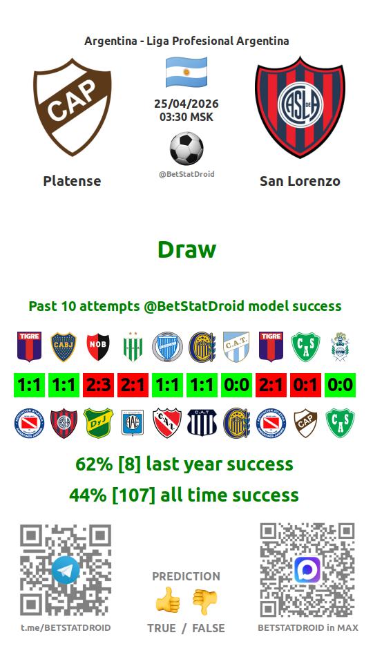 ✔ Platense scores under 2,5 goals in each of 11 last games