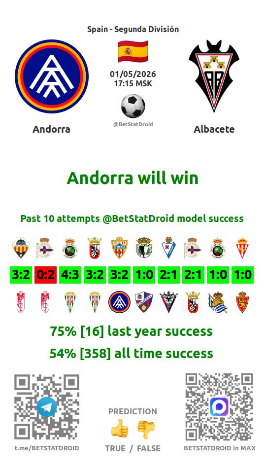 ✔ Andorra scores under 1,5 goals in each of 5 last games
