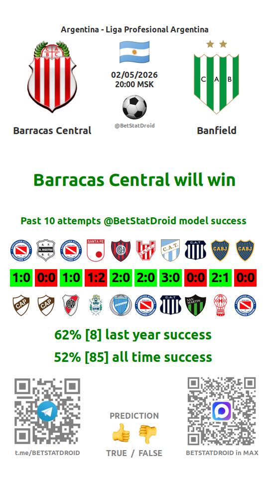 ✔ Barracas Central lost under 2,5 goals in each of 20 last games
