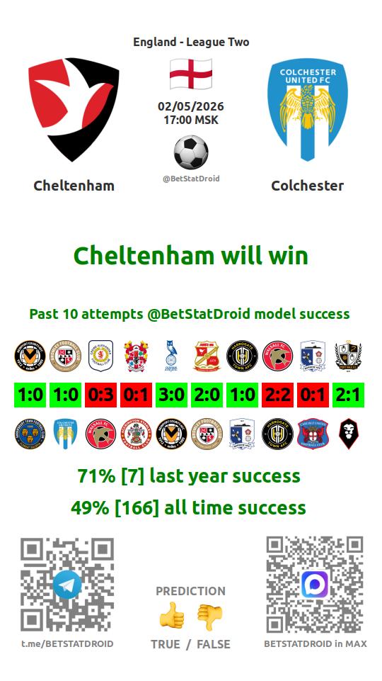✔ Cheltenham scores under 2,5 goals in each of 9 last games