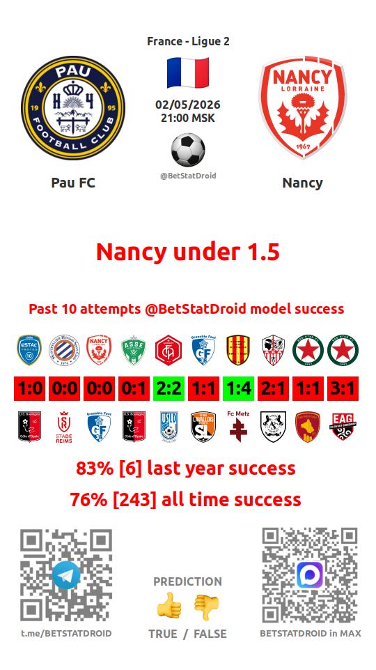 ✔ Nancy lost under 2,5 goals in each of 10 last games