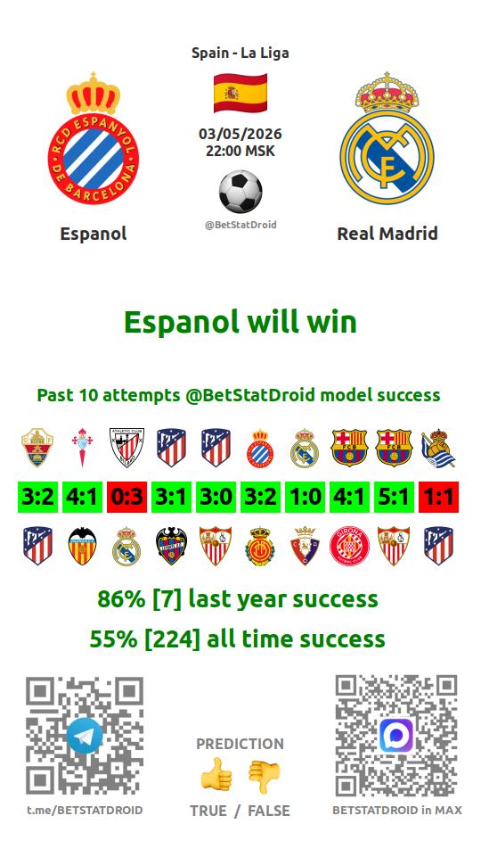 ✔ Espanol scores under 1,5 goals in each of 7 last games