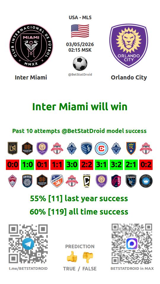✔ Orlando City scores under 2,5 goals in each of 10 last games