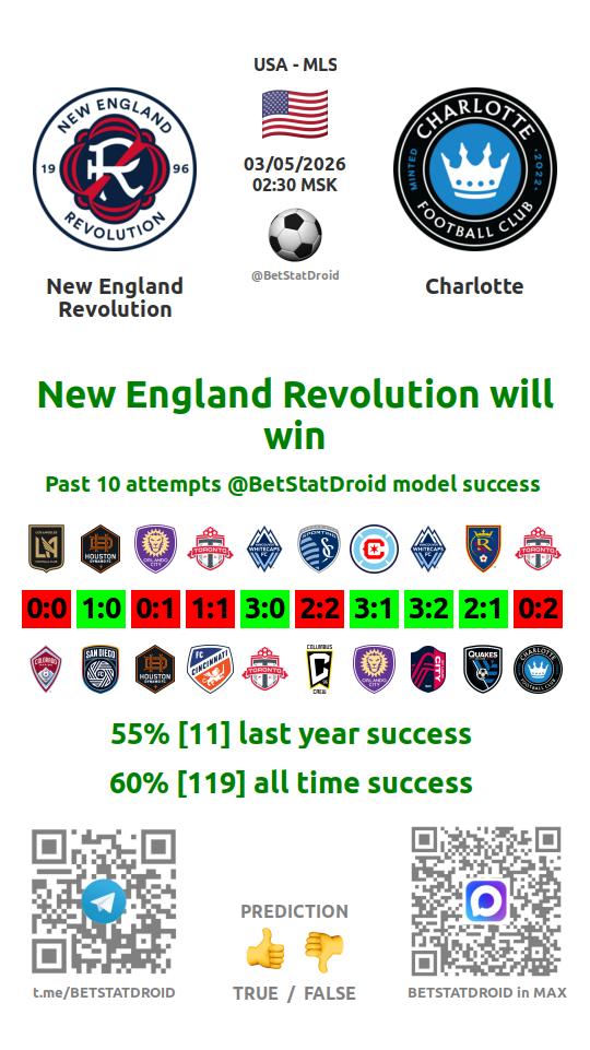 ✔ New England Revolution scores under 2,5 goals in each of 8 last games