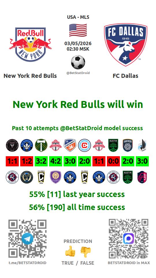 ✔ FC Dallas scores under 2,5 goals in each of 10 last games