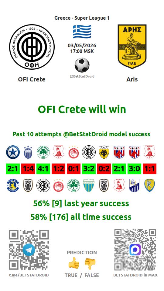 ✔ Aris scores under 1,5 goals in each of 13 last games
