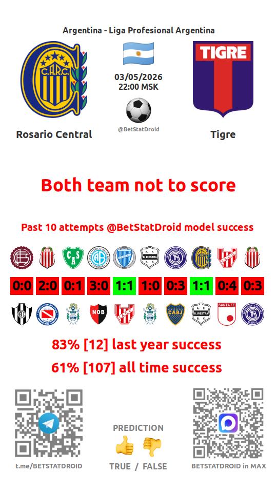 ✔ Rosario Central scores under 2,5 goals in each of 11 last games
