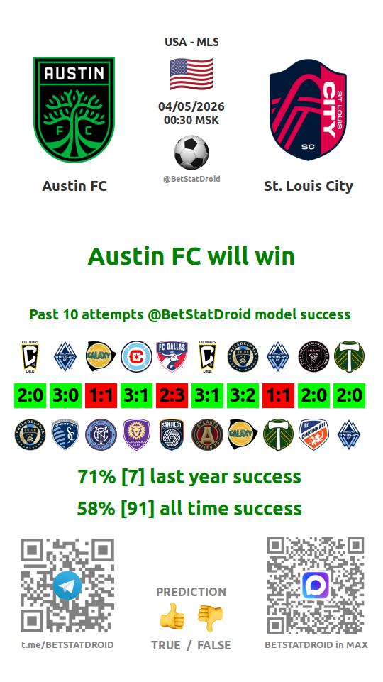 ✔ St. Louis City scores under 1,5 goals in each of 5 last games