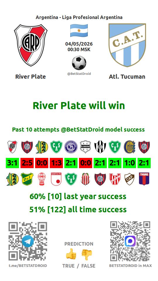 ✔ River Plate lost under 2,5 goals in each of 11 last games