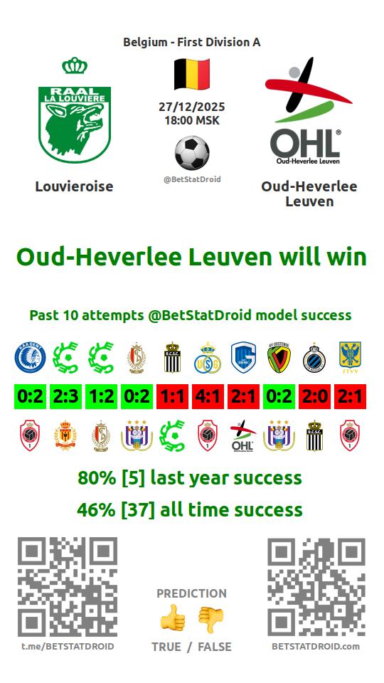 ✔ Louvieroise scores under 2,5 goals in each of 27 last games