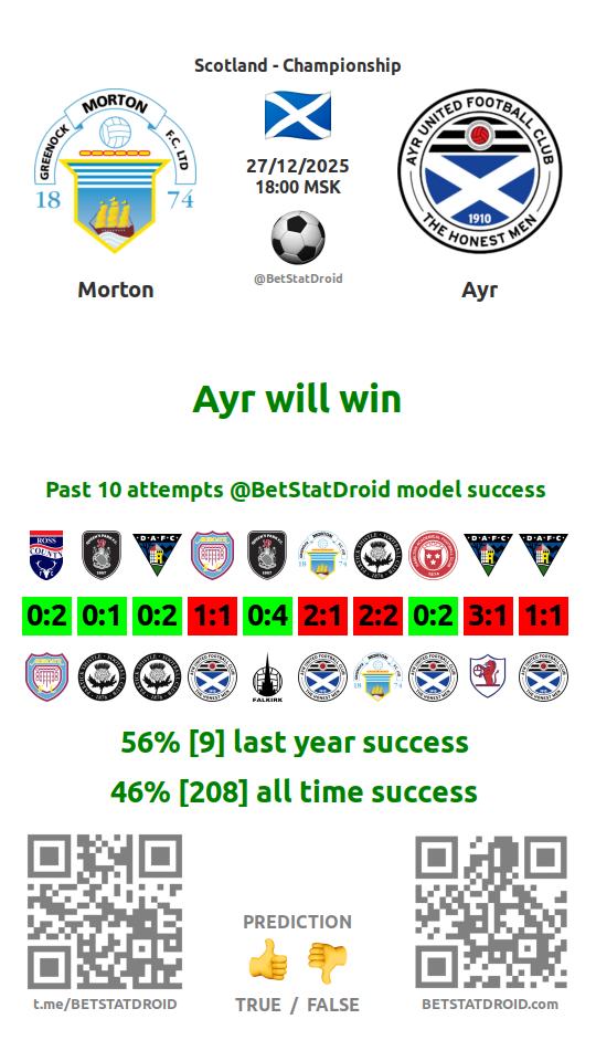 ✔ Ayr scores under 2,5 goals in each of 11 last games